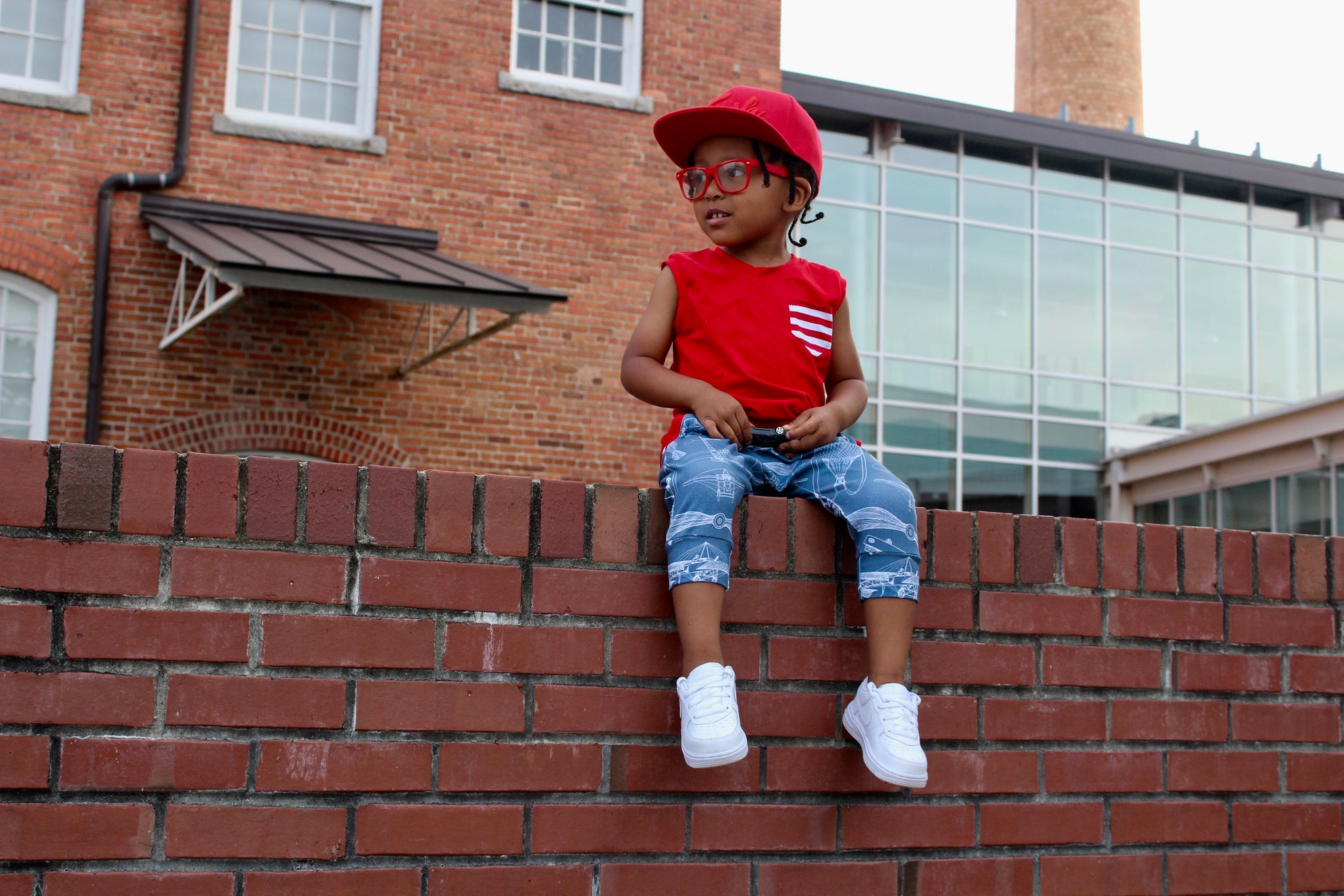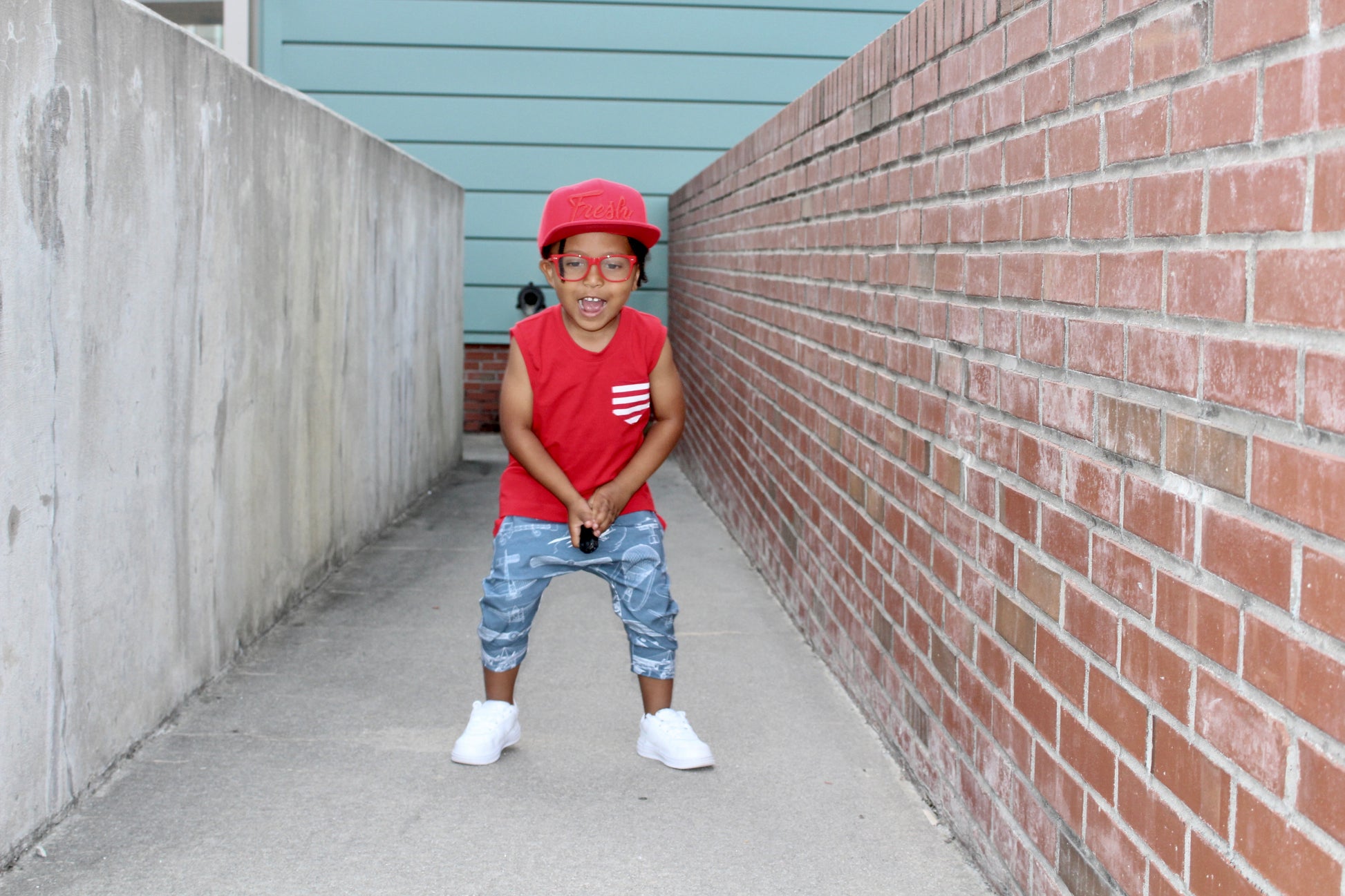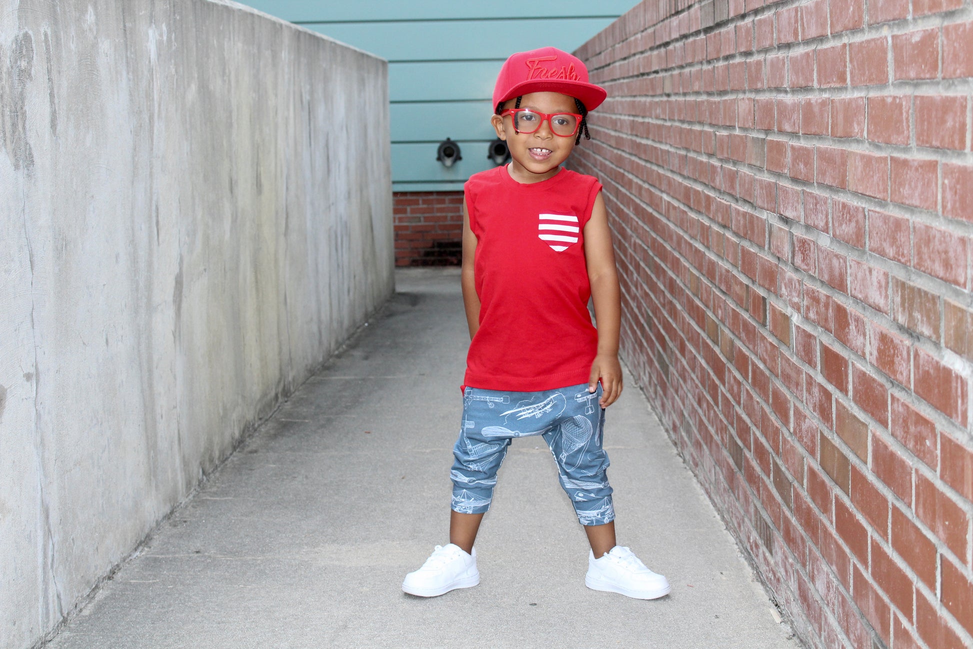 The tank shown is a solid red cotton lycra knit tank with red and white stripes pocket.