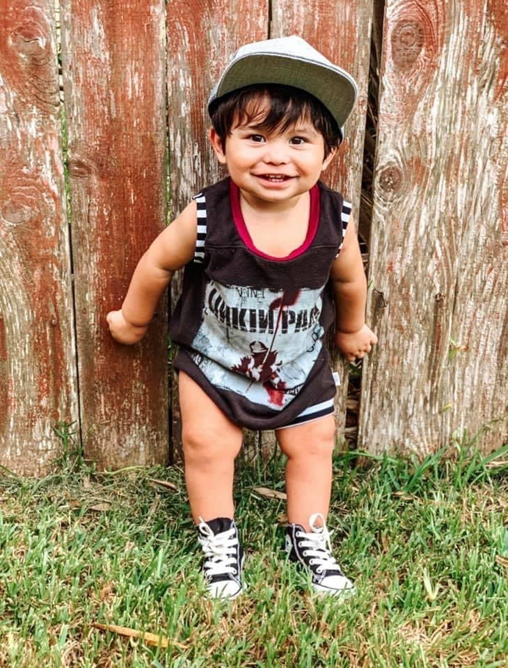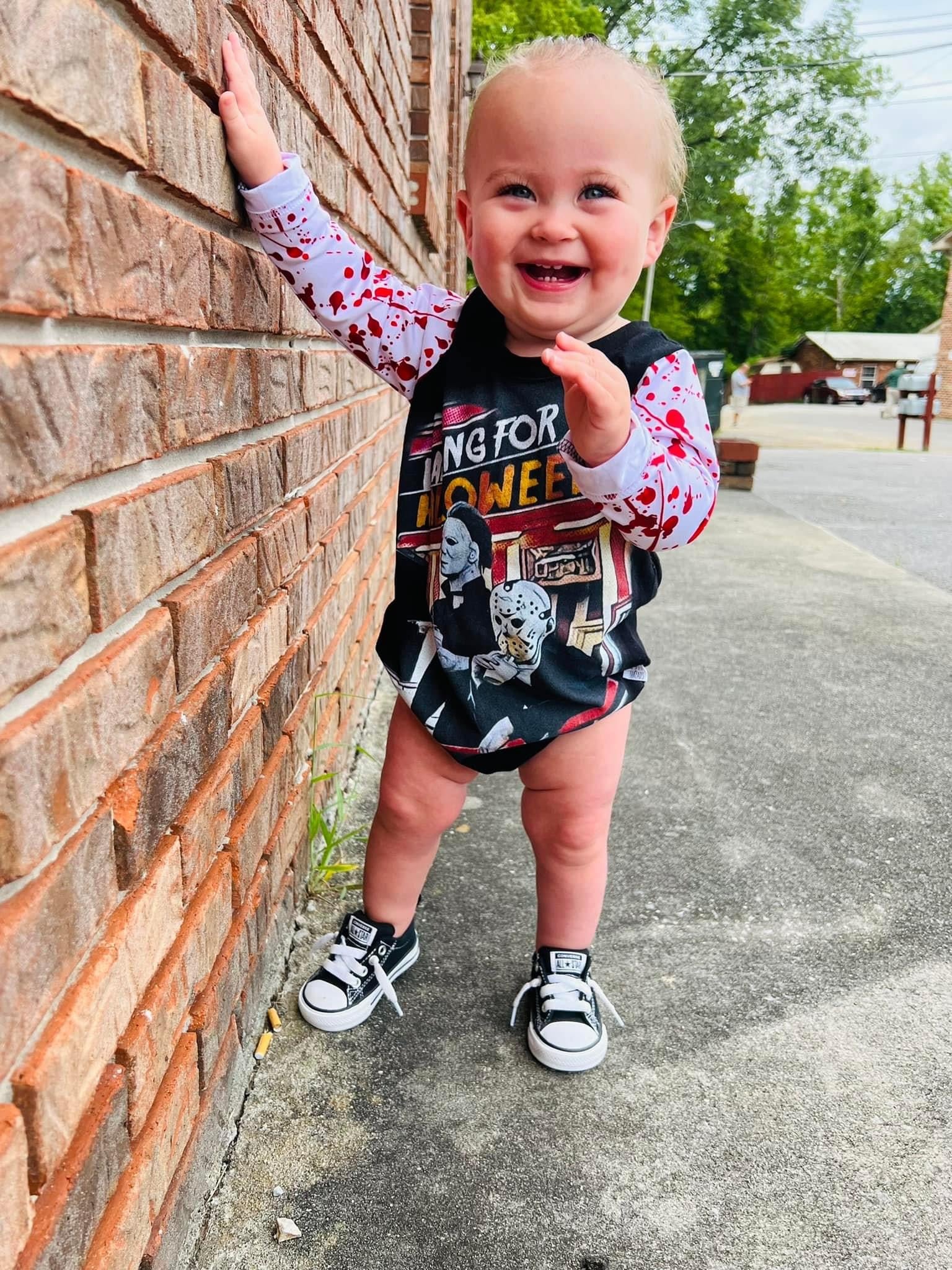 Our insanely comfy upcycled rompers are perfect for the little boy or girl who wants to show off their unique style and personality. No two rompers will be identical, so let them show the world their (or your) favorite band, team, cartoon or even candy.